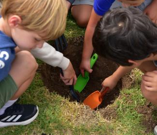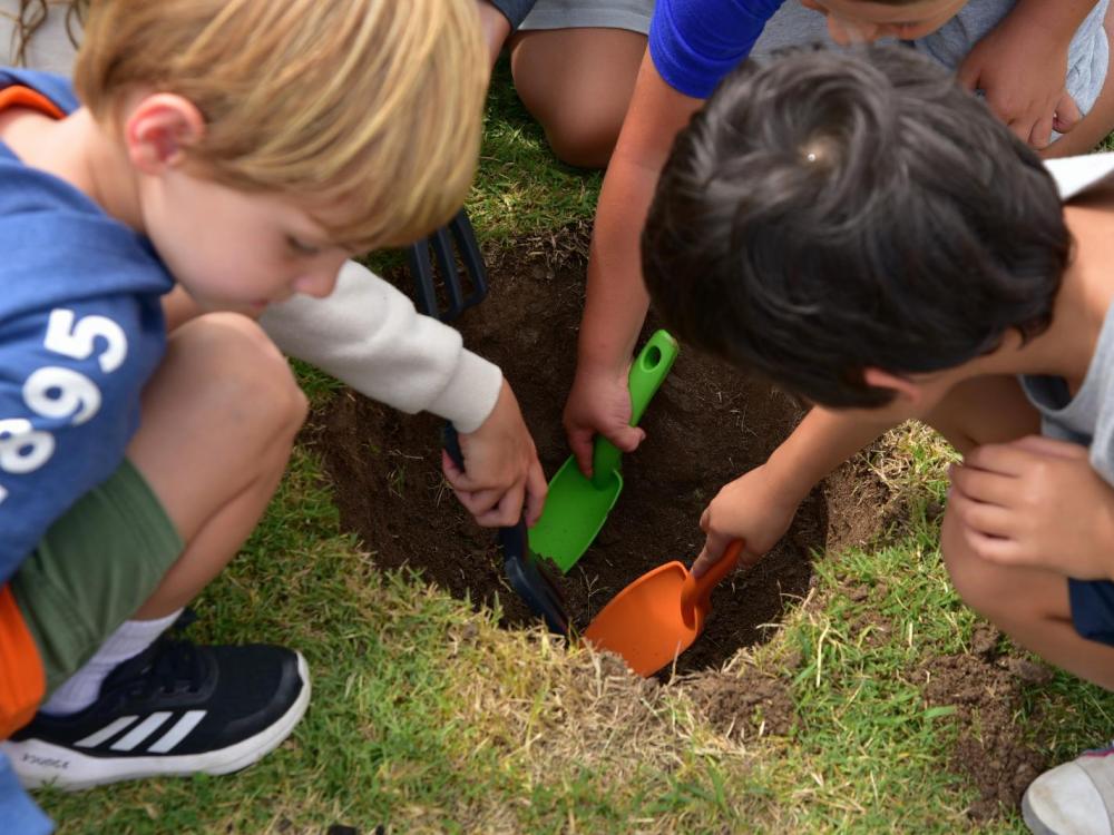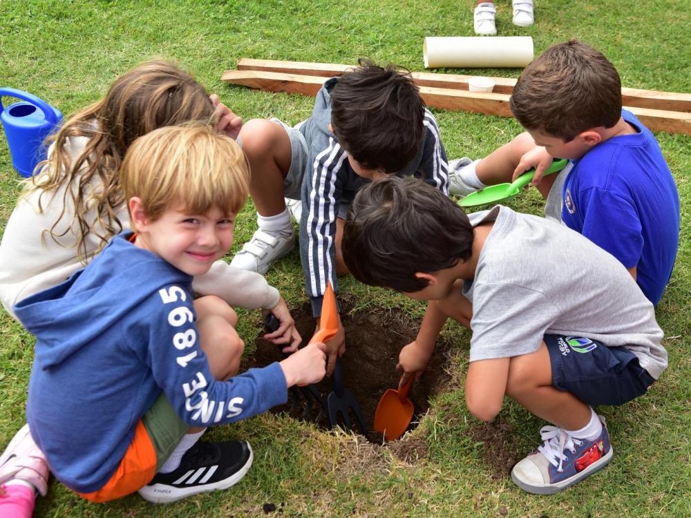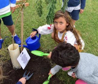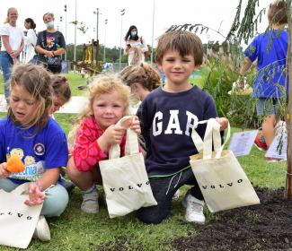 Los niños que concurren a la Colonia de vacaciones participaron de la segunda jornada de plantación de árboles autóctonos en la sede de Carrasco Lawn Tennis Club de Solymar de la mano de Volvo Cars Uruguay.